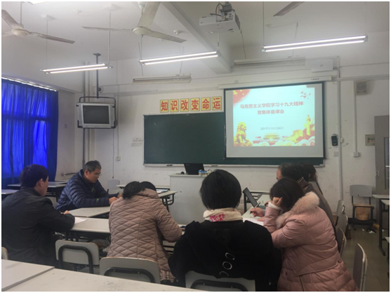 马克思主义学院副院长茌良计主持。茌老师首先传达了学校党委关于学习贯彻十九大精神的工作部署,要切实联系自己工作实际、思想实际学习贯彻十九大精神。茌老师指出,学习领会贯彻好党的十九大精神,是每个党员也是我们思政课教师的必修课。在学习贯彻十九大精神过程中,不仅要坚持全面准确,而且要坚持理论联系实际,在学懂弄通做实上下功夫。要紧紧围绕“讲什么”“怎么讲”“怎么讲得好”等问题,结合我校实际,以学生喜闻乐见的方式上好思政课,抓紧抓实十九大精神宣讲,马克思主义学院要走在学校学习贯彻十九大精神的前列,做好宣传党的理论政策的“轻骑兵”。
