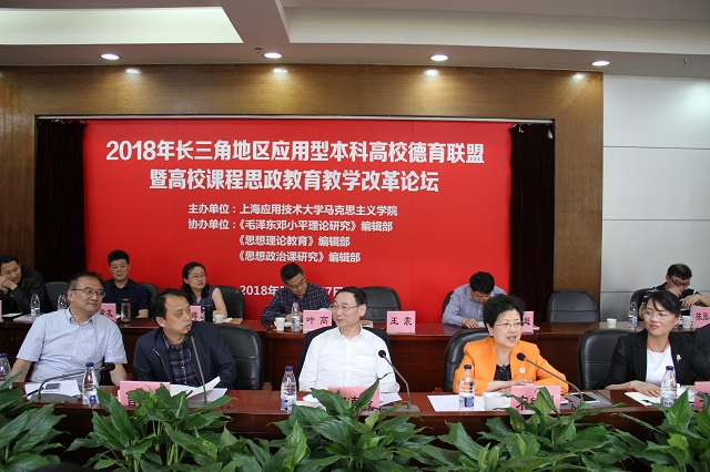 5月26日,2018年长三角地区应用型本科高校德育联盟暨高校课程思政教育教学改革论坛在上海应用技术大学举行。市教卫工作党委副书记、市教委副主任、教育部思政理论课教学指导委员会副主任高德毅,市教委德育处处长耿绍宁、政策法规处处长王磊,市教育科学研究院副院长、市学生德育发展中心主任沙军,我校马克思主义学院副院长茌良计、支部书记江龙出席本次论坛活动。