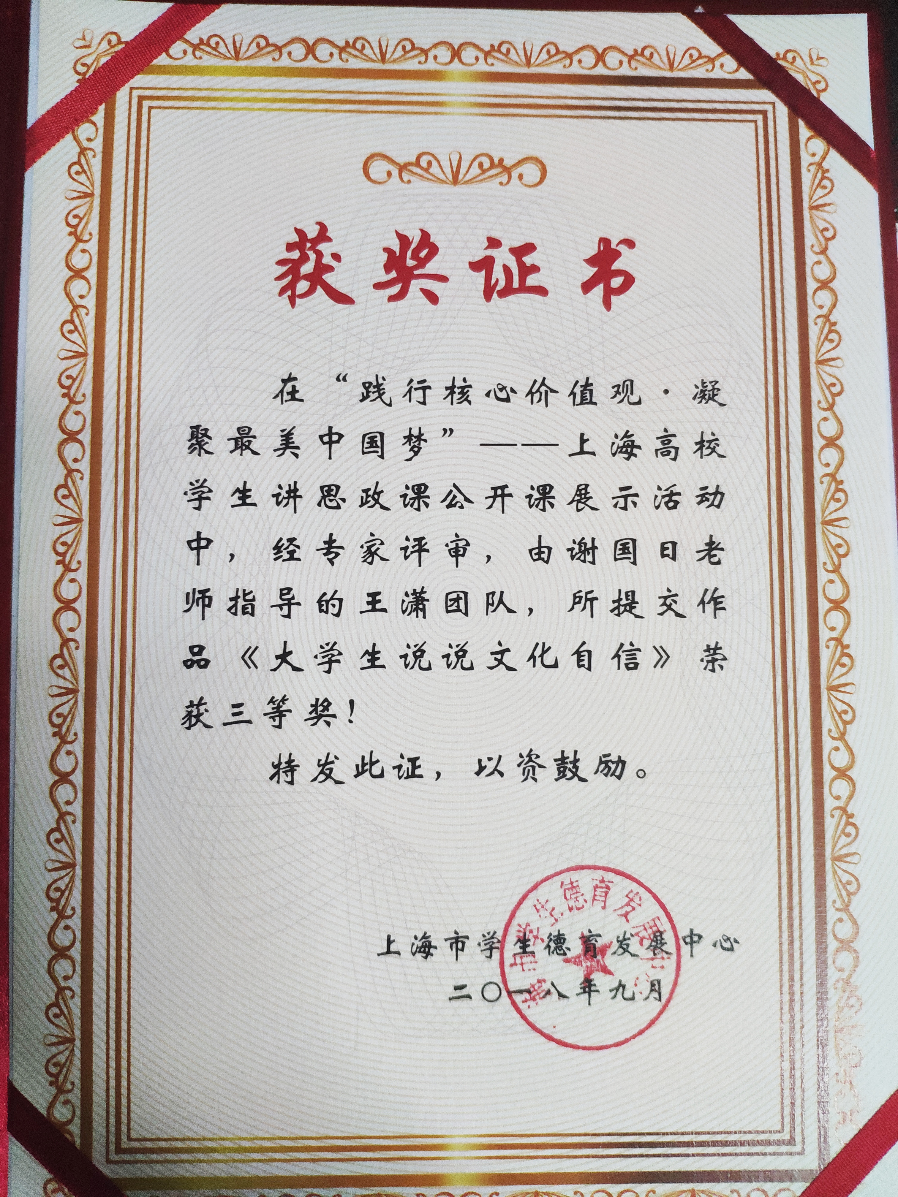 日前,马克思主义学院指导选送的两个学生团队在由上海市学生德育发展中心主办的“昂首复兴路•最美新时代”——第二届全国高校学生讲思政课公开课展示活动中均获三等奖。