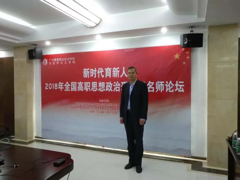 为了深入学习贯彻习近平新时代中国特色社会主义思想和党的十九大精神,深入贯彻落实全国教育大会精神,“新时代育新人——2018年全国高职思政课名师论坛”于11月25日在广州番禺职业技术学院行政会议室隆重举行。本次论坛由首批广东省高校思政课名师工作室“曹群名师工作室”、广东省高校思政研究会、《思想教育研究》编辑部、广州番禺职业技术学院共同主办。