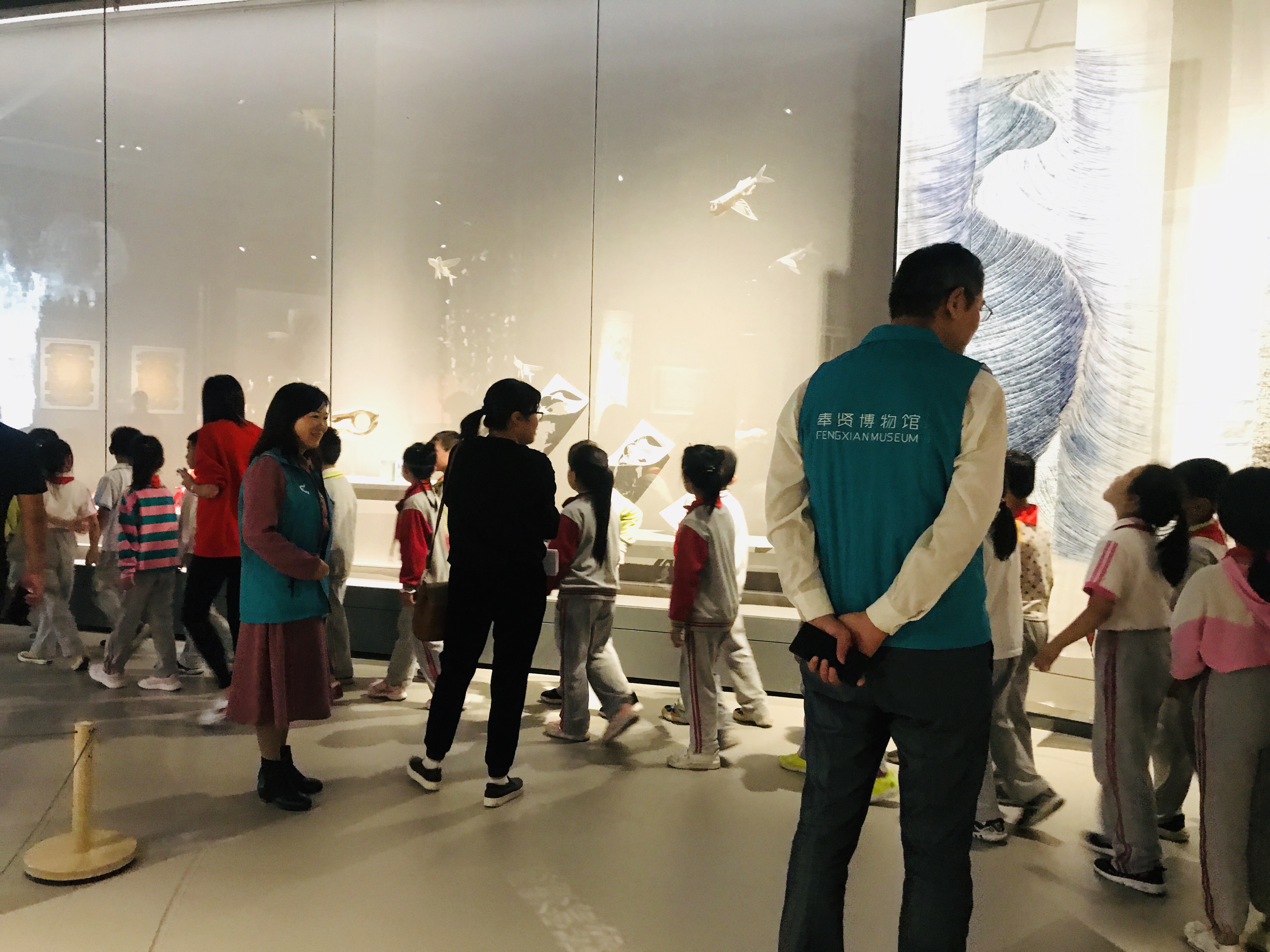 教师们到馆之后立即就穿上了志愿服,在博物馆工作人员的安排下来到场馆各个角落担任指引、协管和问询等工作。当天下午,恰逢奉贤区诸多小学数百名学生前来参观,教师们耐心引领,积极协管,给每位参观者留下了美好印象。在志愿服务过程中,老师们也充分体会到了志愿者工作的艰辛和奉献精神,同时深深感受到在中国这样一个发展中的人口大国,只有涌现出更多乐于奉献的志愿者,社会才能变得更加有序和谐。(作者:谢国日 供稿单位:马克思主义学院)