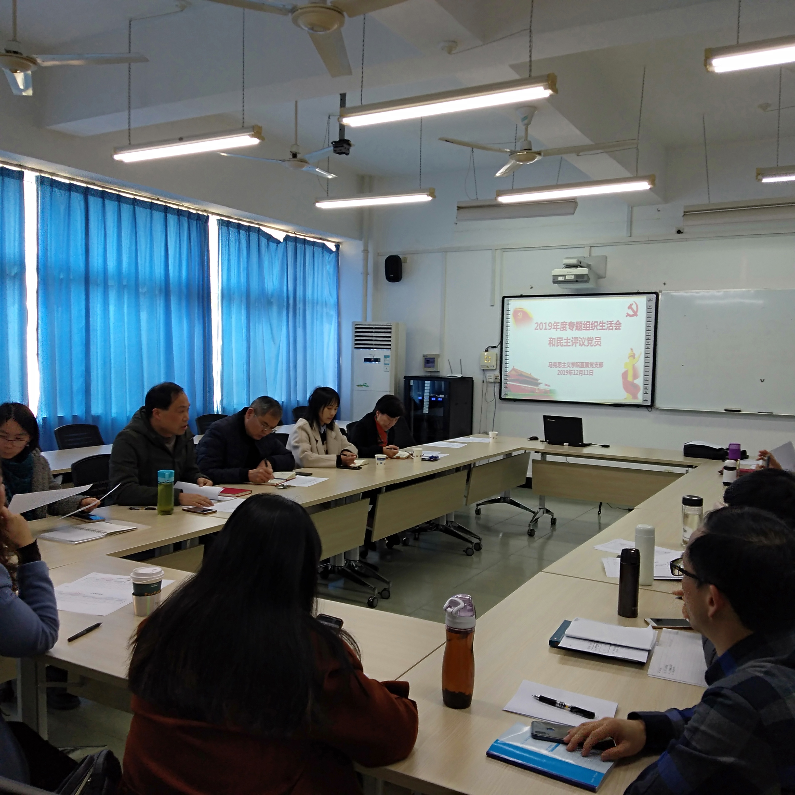 为深入学习贯彻习近平新时代中国特色社会主义思想、党的十九大和十九届二中、三中、四中全会精神,根据市委主题教育领导小组和教卫工作党委相关工作要求,以及学院主题教育办公室工作安排,2019年度马克思主义学院直属党支部专题组织生活会和民主评议党员经过精心准备,在组织党员集中学习,开展谈心谈话、征求党员同志意见的基础上,于2019年12月11日下午在A206会议室顺利召开,学校党委副书记、纪委书记毛玉婷和组织部王山月老师到会指导,马克思主义学院全体党员参加了此次会议,会议由马克思主义学院直属党支部副书记江龙同志主持。