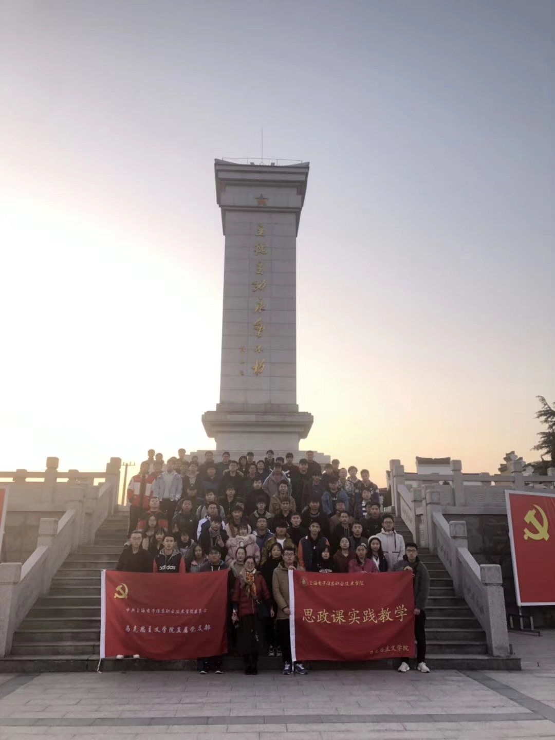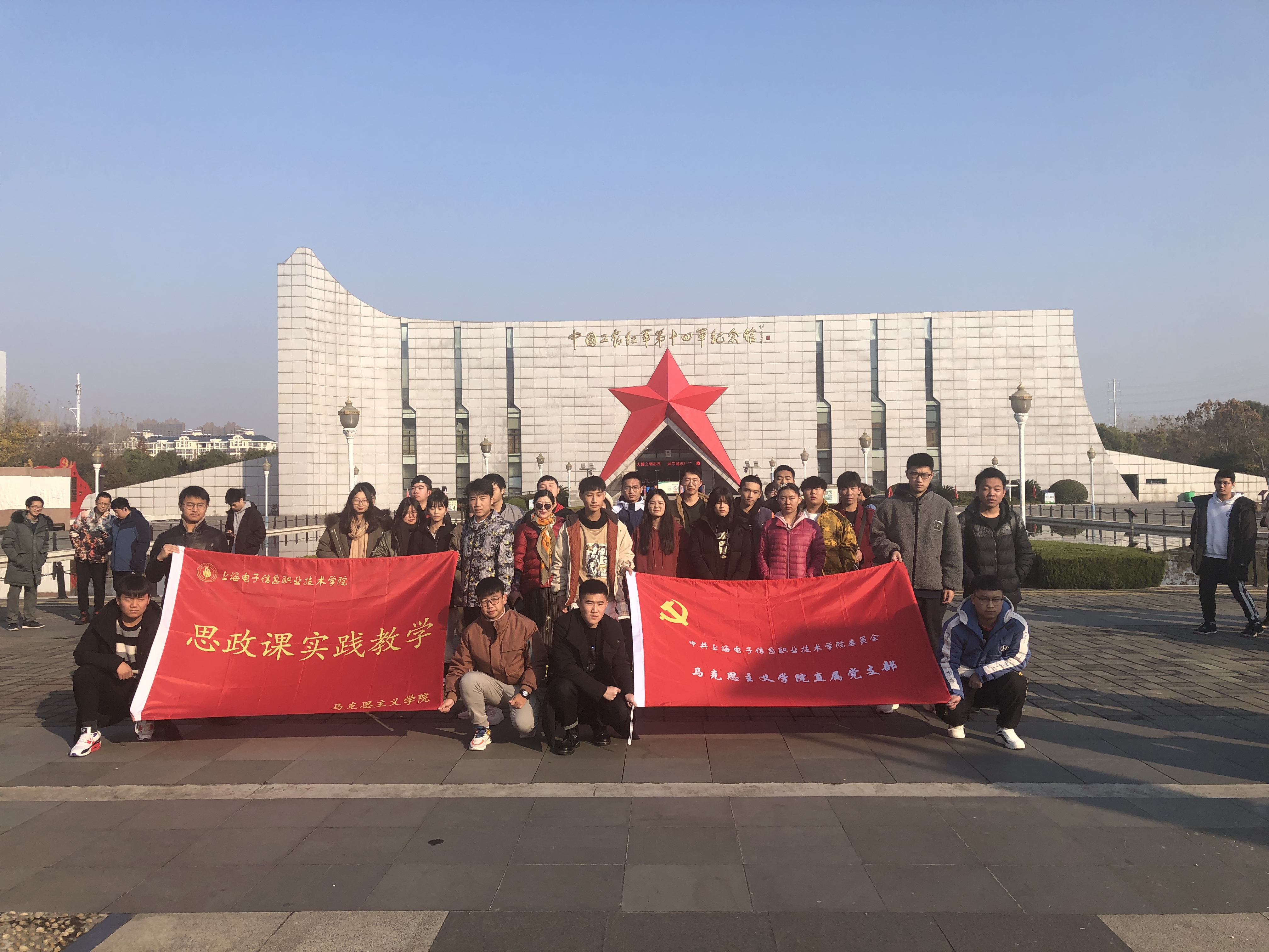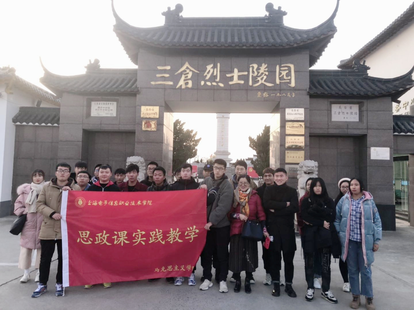 12月6~7日,上海电子信息学院马克思主义学院思政实践课堂走出校园,来到江苏东台如皋进行实践教学。来自19高本计算机,19机电,机器人艺术设计等10个专业的78名同优秀同学,在马淑荣老师的带领下,参观考察了三仓烈士陵园,粟裕大将纪念馆,红十四军纪念馆等红色爱国主义教育基地,凭吊烈士,追忆革命战争年代的峥嵘岁月。