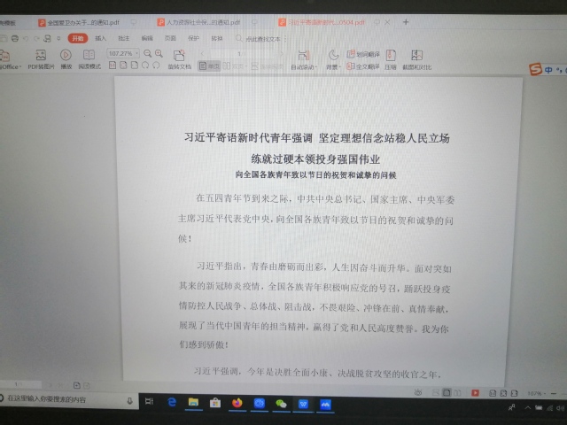 5月27日下午,马克思主义学院全体教师以教研室为单位,利用腾讯会议线上平台共同学习了习近平总书记对新时代青年寄语、《全国爱卫办关于深入开展爱国卫生运动 做好新冠肺炎疫情防控工作的通知》、人社部等七部门发布的《关于应对新冠肺炎疫情影响实施部分职业资格“先上岗、再考证”阶段性措施的通知》等文件内容。