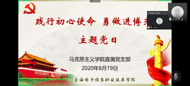 为贯彻落实市委组织部印发的“进博先锋·党员行动”主题党日活动提示,根据学校党委组织部的工作要求,8月19日上午,马克思主义学院直属党支部通过腾讯会议平台开展了“践行初心使命 勇做进博先锋”主题党日活动。马克思主义学院全体党员参加了活动,活动由马克思主义学院直属党支部副书记江龙主持。