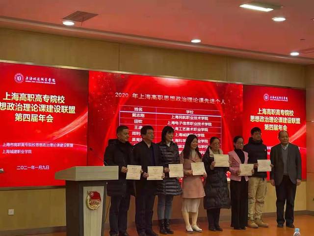 在表彰环节中,我校党委书记田钦荣获上海高职思政课第四届“先进个人”称号,马克思主义学院教师柳玉英荣获上海高职思政课第四届教学骨干,马克思主义学院教师谢国日、陈育君、付蓉、朱佳、柳玉英分别获得2020年度上海市高职思政课教学案例比赛特等奖、一等奖、二等奖、优胜奖,马克思主义学院教师朱佳和茌良计荣获上海市高职高专思想政治教育优秀论文三等奖。