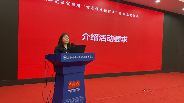 本活动由马克思主义学院直属党支部、学生工作部主办,马克思主义学院分工会、日新思辨社承办。28名校内外教师与72名经遴选的我校学生分工参与了朗读《中华人民共和国宪法》全文,这分别对应了党领导人民的28年新民主主义革命史和72年新中国史,以“百名师生读宪法”共同向建党百年献礼。本活动于12月1日在C108报告厅正式启动,并从12月4日国家宪法日起在我校“鹭洲学畔”平台陆续展播活动宣传短片和师生们朗读宪法的音频。