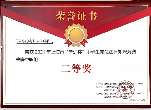 为深入学习贯彻习近平法治思想和党的十九届六中全会精神,落实“八五”普法规划要求和部署,提高学生的法治观念和法治素养,2021年12月3日下午,由市教卫工作党委、市教委、市司法局、市法宣办主办的2021年上海市“新沪杯”中学生法律知识(中职组)团体决赛在上海市行政管理学校举行。
