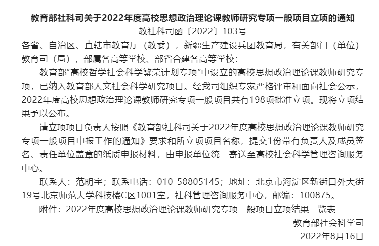 近期,教育部社会科学司发布《2022年度高校思想政治理论课教师研究专项一般项目立项的通知》。我校马克思主义学院朱佳老师的《上海红色法治资源融入“思想道德与法治”课教学及资源库建设研究》获批教学研究项目,资助金额10万元。这标志着我校思想政治理论课教学改革和科研创新取得了新成效。