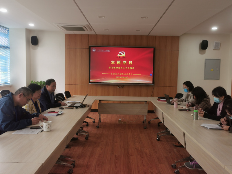 为深入学习贯彻党的二十大精神,及时将党的二十大精神融入思政课教学,按照学校党委的相关工作要求,马克思主义学院直属党支部于10月26日下午通过线上线下(A210会议室)相结合的方式,开展了“学习贯彻党的二十大精神”主题党日。活动由马克思主义学院直属党支部副书记江龙主持,校党委副书记、纪委书记毛玉婷以及马克思主义学院全体党员教师参加了活动。