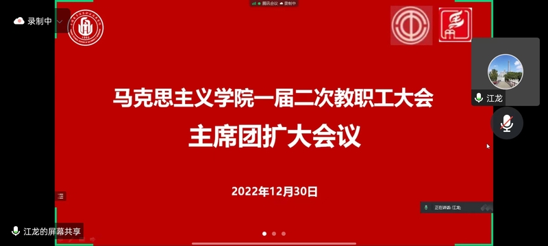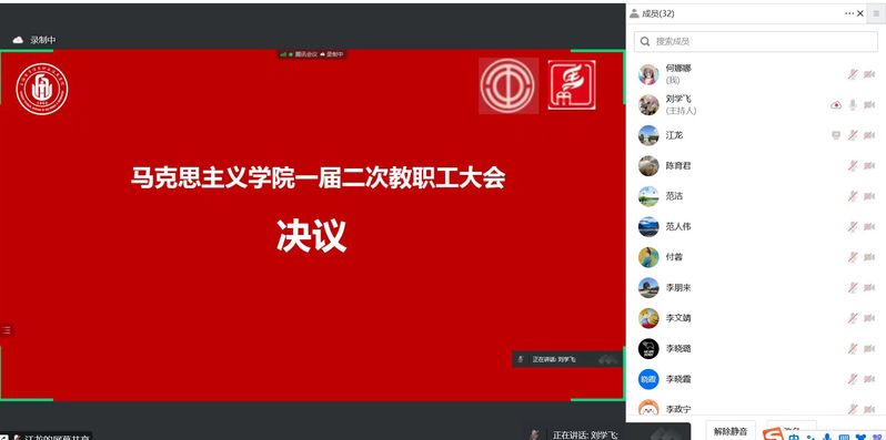 为深入贯彻落实党的二十大精神,充分保障马克思主义学院教职工参与民主管理、民主监督的权利,广泛凝聚全体教职工的智慧和力量,激励全体教职工以主人翁姿态投身建设高水平马克思主义学院、加快建设本科层次职业技术大学,12月30日下午,马克思主义学院一届二次教职工大会通过腾讯会议平台如期召开,马克思主义学院全体教职工参加大会,会议由分工会主席刘学飞主持。
