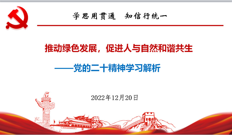 12月20日,宋立峰老师为22机电1班,22智控1班、2班,22集成1班、2班等开展《推动绿色发展,促进人与自然和谐共生》党的二十大精神宣讲活动。宣讲从新时代我国绿色发展成就入手,结合党的二十大报告第十部分,重点阐述了全球气候变化下,党中央统筹国内国际两个大局作出双碳战略决策,站在人与自然和谐共生的高度谋划发展。