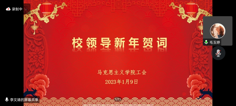 为进一步激励马克思主义学院教职工在新的一年继续同心同德、踔厉奋发、勇毅前行,为学校创建本科层次职业技术大学的发展目标而团结奋斗,1月9日晚上,马克思主义学院工会通过腾讯会议平台举办了2023年“迎新年,贺新春”文艺晚会,校党委副书记、纪委书记毛玉婷以及马克思主义学院全体教职工参加了活动,活动由马克思主义学院工会主席刘学飞主持。