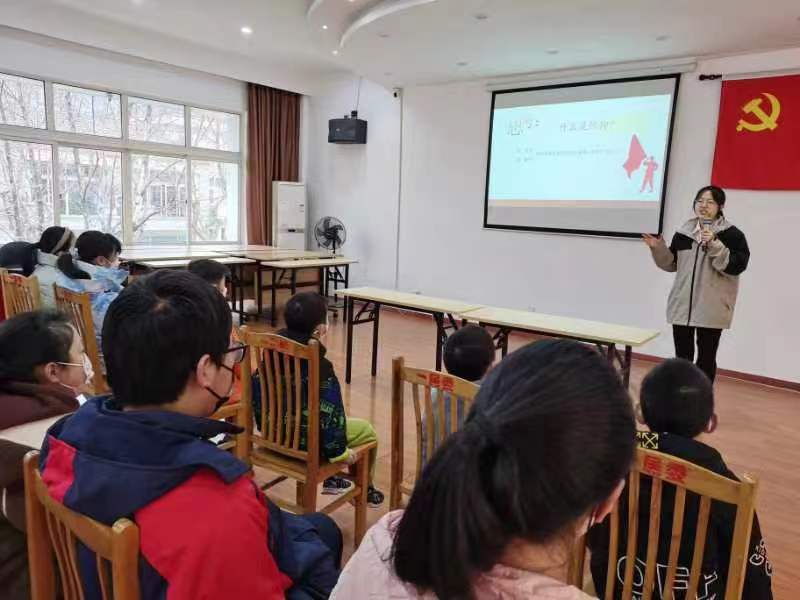 2023年2月11日上午,我校大学生宣讲团——文思木铎社指导老师谢国日带领社团宣讲骨干原甜甜同学到宝山区杨行社区为中小学学生讲中国故事,虽然是周末且下着小雨,但一大早,数十名学生纷纷来到现场聆听。