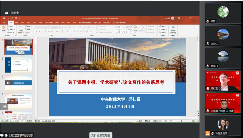 为了进一步提升我校思政教师的研究能力和科研素养,4月1日上午,马克思主义学院通过腾讯会议平台举办了思政教师科研能力提升专题培训。培训会议由马克思主义学院副院长茌良计主持,中央财经大学邱仁富教授参加会议,并就思政教师课题申报、科学研究等问题做了专题报告,我校马克思主义学院全体教师参加了培训。