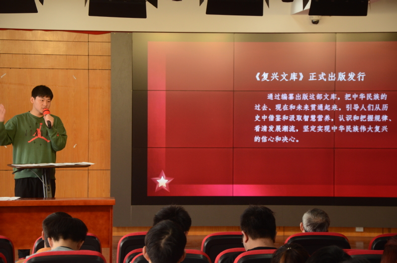 随后,文思木铎社宣讲员周韦,王雨生和倪辰瑶同学作为主讲人先后展开了他们的宣讲。周韦同学的《文化兴则国运兴,文化强则民族强》让听众再次认识到继承和发展中华优秀文化的重要性,坚定文化自信,中国才能更有底气,更加自立自强。王雨生同学宣讲的主题是《人与自然和谐共生的现代化》,让大家更加明白了中国式现代化人与自然和谐共生的深刻内涵。倪辰瑶同学的《珍惜韶华,奋发有为》宣讲告诉我们,当代青年要让自己在全面建设社会主义现代化国家的火热实践中绽放绚丽之花。