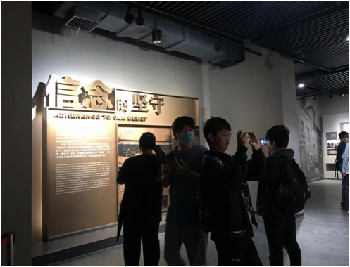 致敬英雄仪式完毕后,大家来到龙华烈士纪念馆。纪念展共分为照亮信仰的殿堂、信仰的召唤、使命的执着、信念的坚守、民族的脊梁、胜利的奋争、时代的先锋和仰望等八个部分。纪念馆内烈士人物事迹照片、实物、各种艺术品,并辅以多种先进的陈展技术,集中展示了英雄人物的生平事迹。在展品和人物传记前,同学们驻足学习。而多媒体展示,仿佛又让大家回到了当年浴血奋战的场景中。