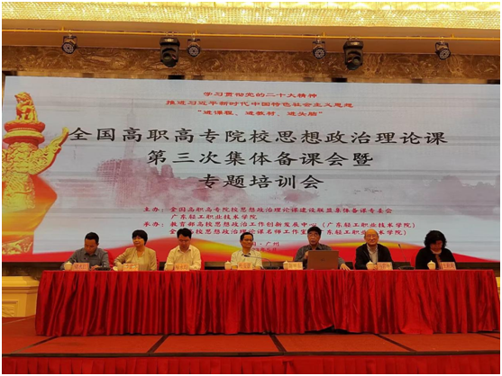 2023年5月11-14日,全国高职高专院校思想政治理论课第三次集体备课会暨专题培训会在广州召开。会议由全国高职高专院校思想政治理论课建设联盟集体备课专委会主办、教育部高校思想政治工作创新发展中心、全国高校思想政治理论课名师工作室承办。来自全国高职院校近500余名思政课教师参会。我校马克思主义学院荆筱槐老师参加了会议。