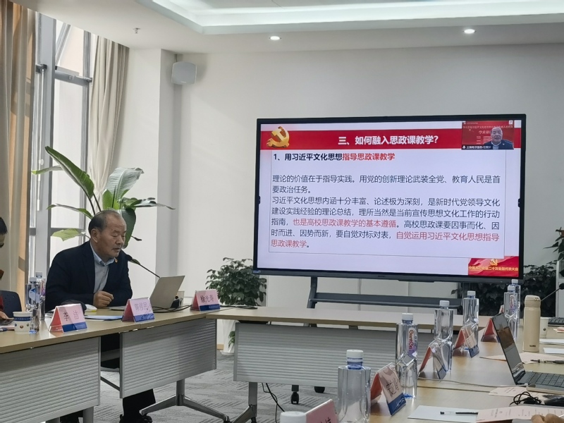 为深入学习贯彻习近平文化思想,用好红色资源,主动承担起建设中华民族现代文明的文化使命,11月25日,由我校马克思主义学院、上海红色文化传承研究中心主办,上海中侨职业技术大学马克思主义学院、上海现代化工职业学院马克思主义学院、上海闵行职业技术学院基础教学部协办的“学习贯彻习近平文化思想暨红色文化融入思政课”学术研讨会在普陀校区图书馆104会议室隆重召开,研讨会采用线上线下相结合方式进行。与会专家学者就如何加强习近平文化思想学习、运用红色资源提升思政课吸引力等时代命题进行了深入交流。本次研讨会由马克思主义学院副院长茌良计主持,来自上海、安徽、江西、天津、西藏、浙江等地高校的150余名老师参加研讨会。