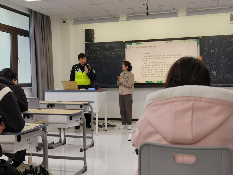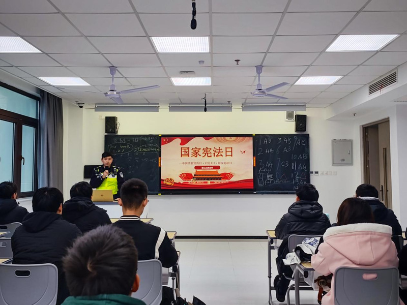 顾浩淼首先介绍了国家宪法日的由来、宪法的特征以及宪法的法律地位。他通过2023年12月4日是我国第十个宪法日,结合青年大学生的生活实际,针对特定群体进行有效普法宣讲,并通过行政执法中的真实案例“以案释法”,介绍大学生在社会交际活动中可能出现的寻衅滋事现象,大学生加入游戏社群可能会涉及管制刀具的购买、使用等行为,大学生在社交媒体上可能会被诱惑不慎掉入传播淫秽物品陷阱等。通过对这些真实案例的讲解,增强了学生的法律意识。顾浩淼在授课中结合办案实践,特别强调了一些特殊情况,如盗窃行为向抢劫行为的转化、盗窃行为向敲诈勒索行为的转化等。通过分享青年大学生群体多发的违法行为案例,对同学们进行警示教育。宣讲结束后,顾警官和同学们进行互动,耐心解答同学们提问。