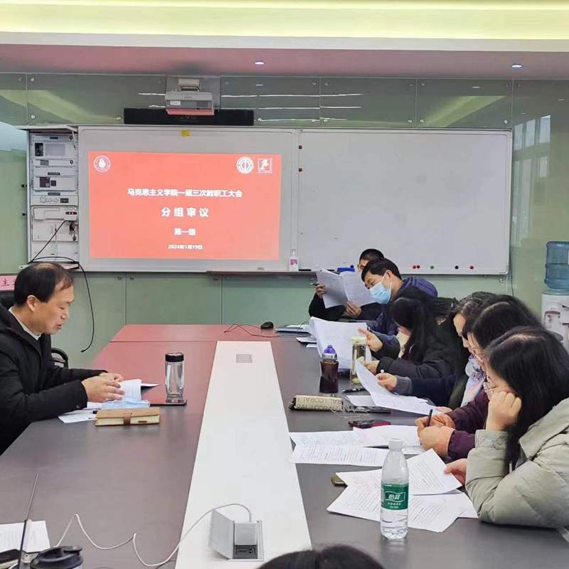 按照大会议程,全体教职工分三组就《2023年马克思主义学院行政工作报告》(草案)进行了认真审议和充分讨论,并由各组召集人在主席团扩大会议中汇报了小组讨论的意见建议。学院全体教职工充分发挥主人翁精神,一致认为学院一年来取得的工作成绩显著,并对学院高质量发展提出了中肯的建议。