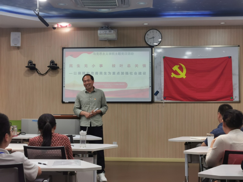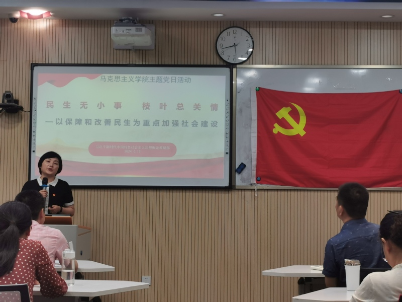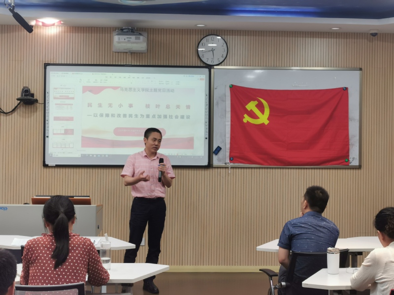 6月19日下午,马克思主义学院直属党支部在奉贤校区A110室开展了主题党日观摩活动,本次活动的主题为“民生无小事 枝叶总关情——以保障和改善民生为重点加强社会建设”。会议由马克思主义学院直属党支部书记陈林河主持,全体党员教师参加了学习交流,各党总支(直属党支部)书记、党支部书记、组织员等受邀观摩。