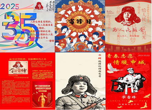 2025年3月5日是第62个全国“学雷锋纪念日”,为了进一步传承和弘扬雷锋精神,马克思主义学院依托实践教学团队和知行法学社开展了以“AI绘雷锋精神,创新燃时代之光”为主题的雷锋精神宣传活动,学生们借助DeepSeek、Kimi、剪映、豆包、Canva等人工智能工具,制作宣传雷锋精神的海报和视频短剧,将雷锋精神与数字艺术深度融合,以创新技术赋予传统精神符号新的时代生命力,以实际行动传承和弘扬雷锋精神。