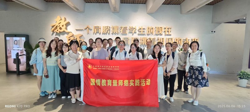 为深化教师队伍对国情的认知,进而引导教师们更好传承红色基因、铸就师者匠心,上海电子信息职业技术学院于2025年6月6日组织全校教师分四条线路开展国情教育暨师德实践活动。活动融合革命精神、工业历史与教育家思想等,为教师们提供了多维度的精神洗礼。活动由我院与教师工作部联合组织,我院多名教师担当各线路领队。