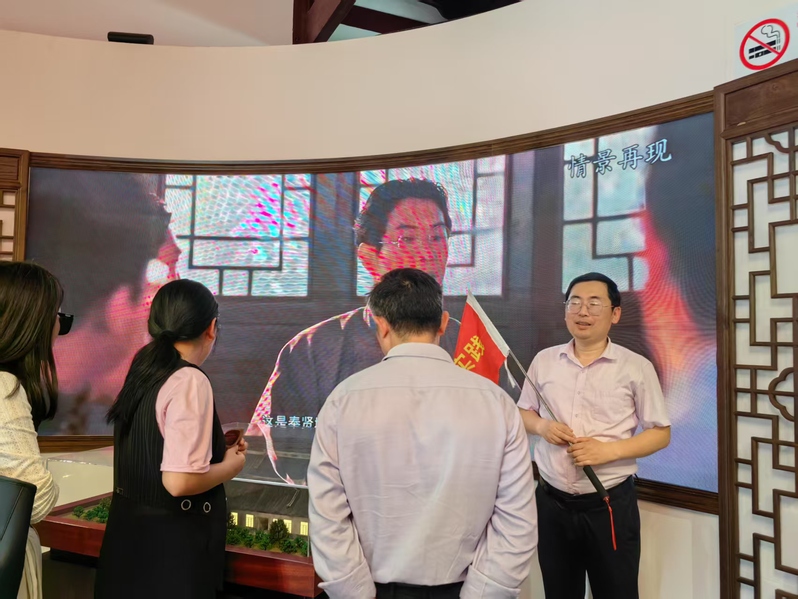 在中共奉贤县委旧址,教师们实地探访了革命历史遗址。从大革命时期展区到土地革命时期展区,从全民族抗战时期展区到解放战争时期展区,教师们仿佛回到了那个星火燎原的峥嵘岁月。教师们深刻认识到,旧址所铭记的,从来不只是昨天血与火的牺牲与坚持,更是红色基因在一代代人心原深处的不息传递。随后,教师们又来到了洪西村“烘炉”,洪西村是李主一烈士的出生地及故居所在地。走进“烘炉”馆内,教师们在思想上跨越时空,油然而生对革命先辈至高无上的敬意。