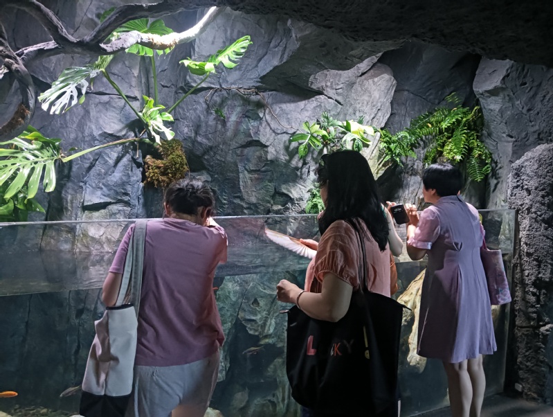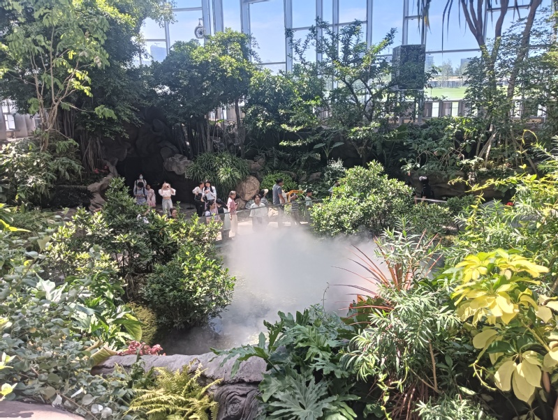 温室花园里,热带植物枝繁叶茂,阳光透过层层枝叶洒落,宛如“绿色仙境”。教职工们漫步其间,或驻足观赏珍稀植物,或拍照记录美好瞬间,同时结合世博文化公园的景观,感受自然与城市文化的和谐共生。